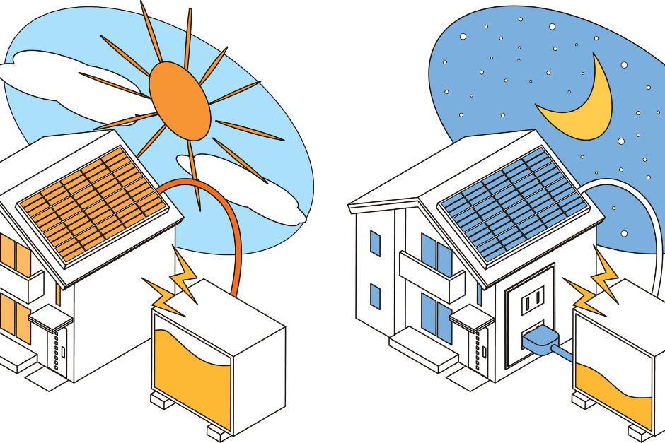 蓄電池は、昼間にためた電気を夜に使える便利な設備です。 電気代の節約につながるだけでなく、停電したときにも照明や冷蔵庫を動かし続けられる、心強い存在でもあります。